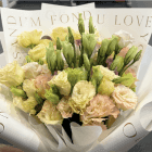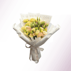 A Eustoma hand bouquet is a delicate and elegant arrangement featuring soft, bell-shaped flowers known for their rose-like appearance. The blooms, often in shades of white, pink, or purple, are gracefully gathered with lush greenery, creating a romantic and timeless bouquet. Perfect for weddings, anniversaries, or any special occasion, this bouquet exudes charm and sophistication, making it a beautiful expression of love and appreciation.